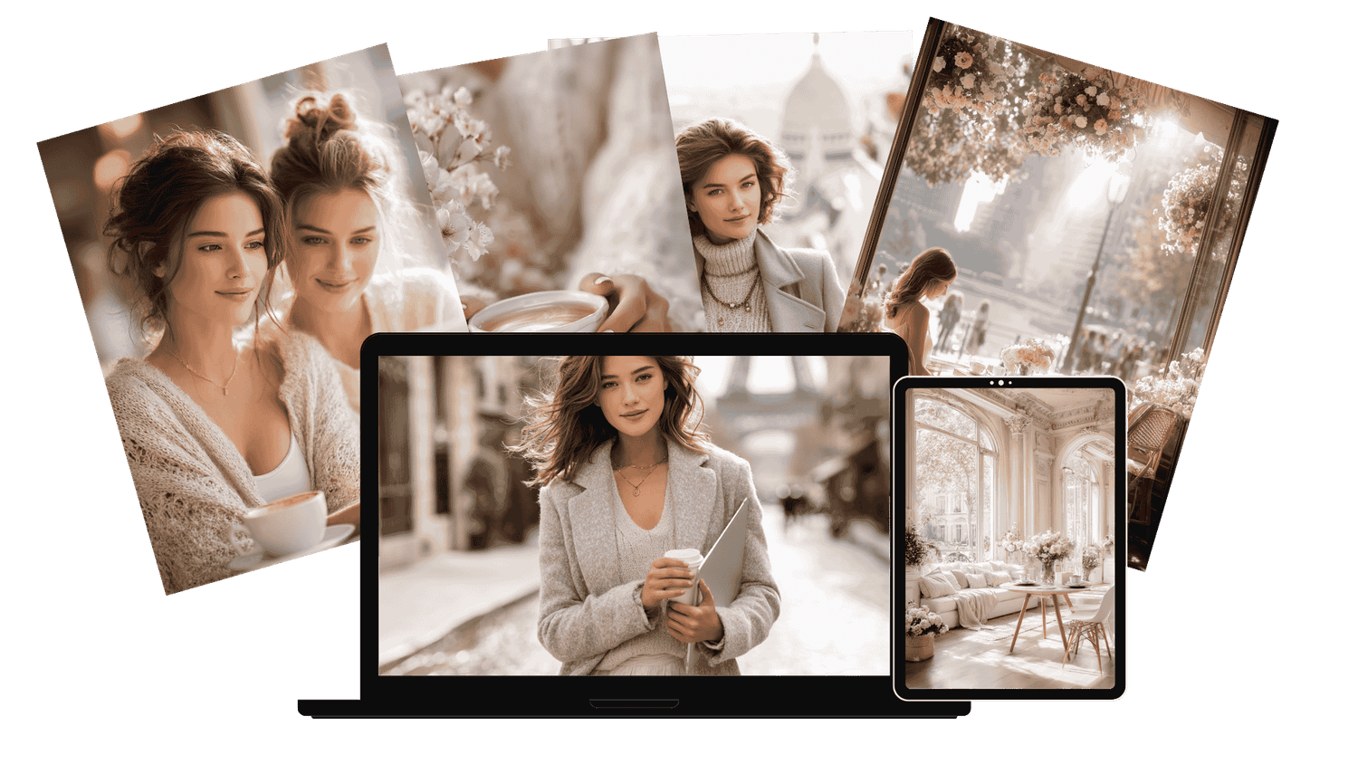 • Soft neutral café flatlays